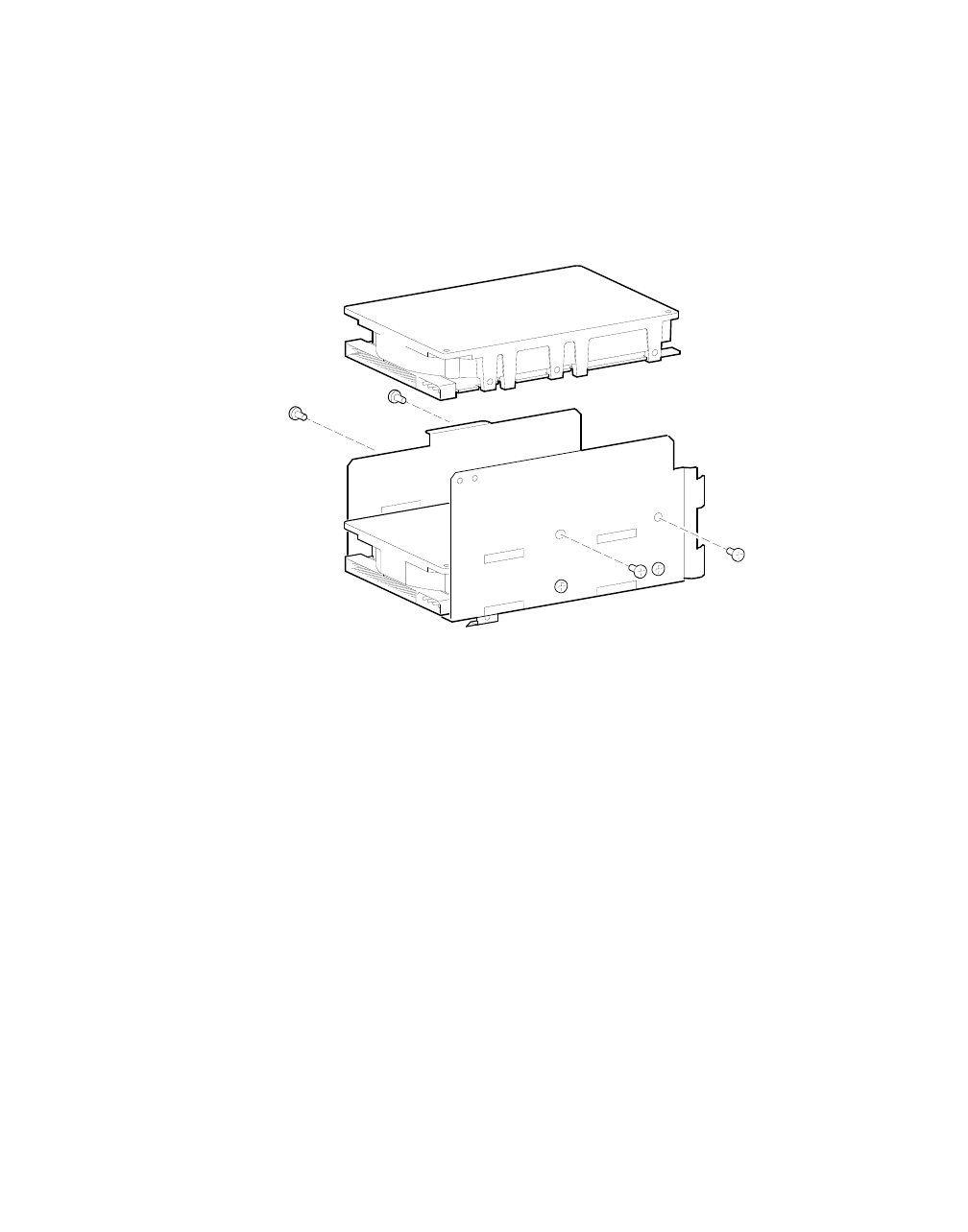 5. Insert the four screws through the side of the bay and into the device as shown.
